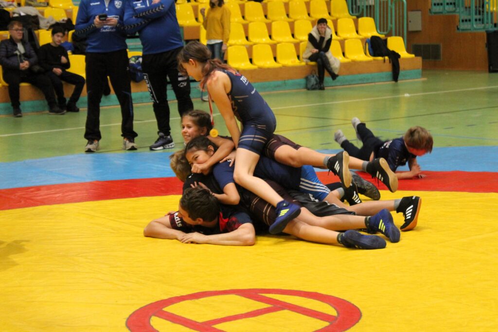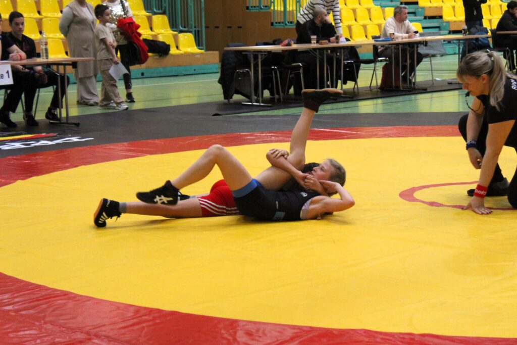 Charlotte startete in der U12 im Freistil und hatte ein volles Programm vor sich. Im ersten Kampf traf sie auf eine bekannte Gegnerin aus Hennigsdorf, gegen die sie bereits einmal gewonnen hatte. Dieses Mal machte es ihre Gegnerin ihr deutlich schwerer. Nach einer gelungenen Abwehr eines Beinangriffs hatte Charlotte sie in der Zange, doch zum Schultersieg reichte es nicht. In Runde zwei nutzte Charlotte geduldig die Fehler ihrer Gegnerin, sicherte sich einen Beinangriff und gewann den Kampf nach Punkten.
