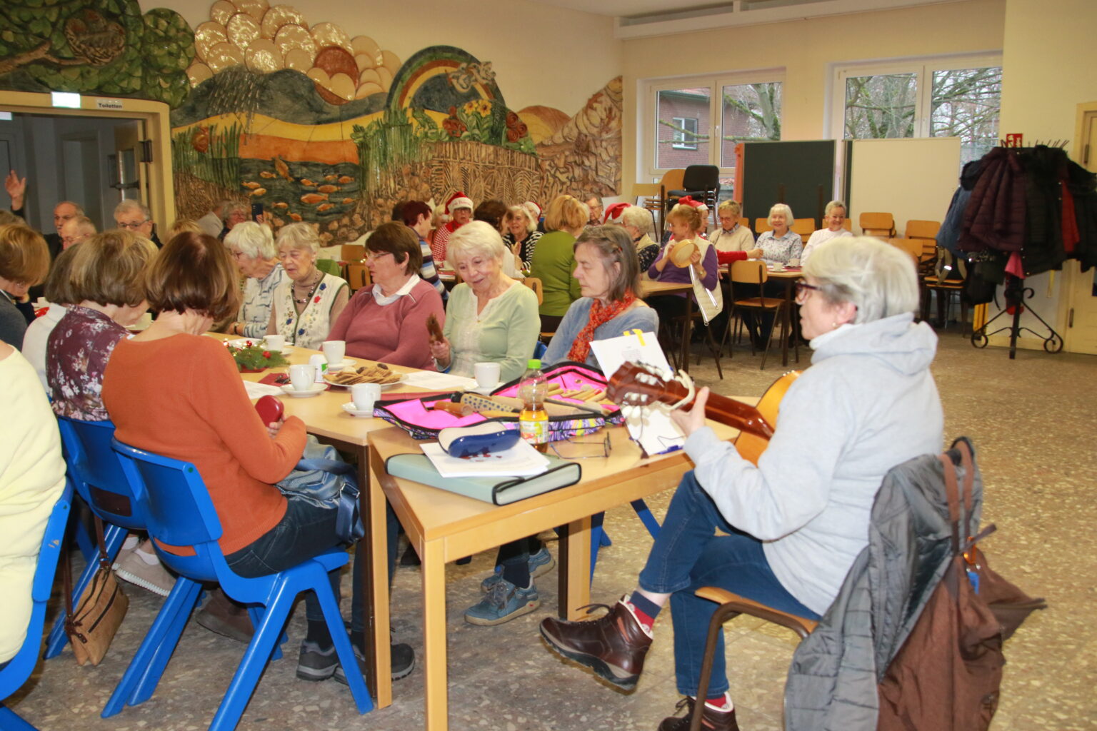 Ina hatte ihre Gitarre mitgebracht und begleitete uns bei den Weihnachtsliedern. Das war schön.