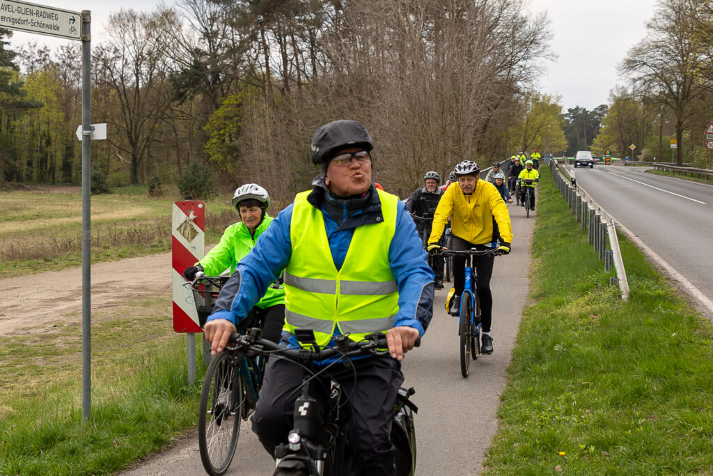 Die rund 35 Kilometer lange Strecke führte wie gewohnt durch Falkensee und das Umland. Besonders erfreulich: Neben vielen bekannten Gesichtern durften wir in diesem Jahr auch einige neue Teilnehmende und Nicht‑Mitglieder begrüßen, die sich mutig vom Wetter nicht abschrecken ließen.